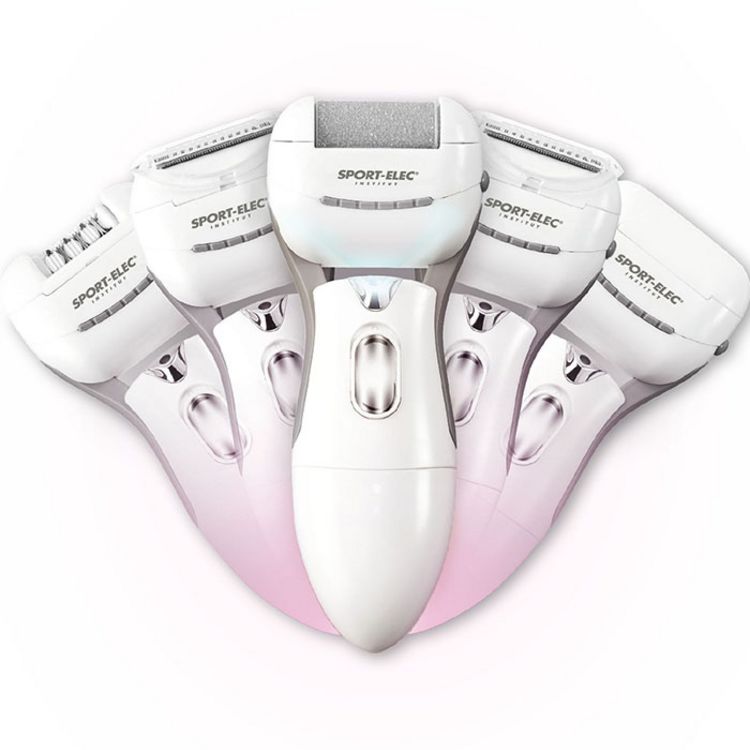 Epile, rase, prend soins de vos pieds, 5 têtes, Kit manucure et pédicure, Résistant à l'eau, Fonctionne avec 2 piles R6 non fournies