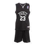 N'attendez plus pour commander cet ensemble de basket de Paris ! Couleurs : Noir/Blanc Maillot + Short Flocage Paris Composition : 100% polyester