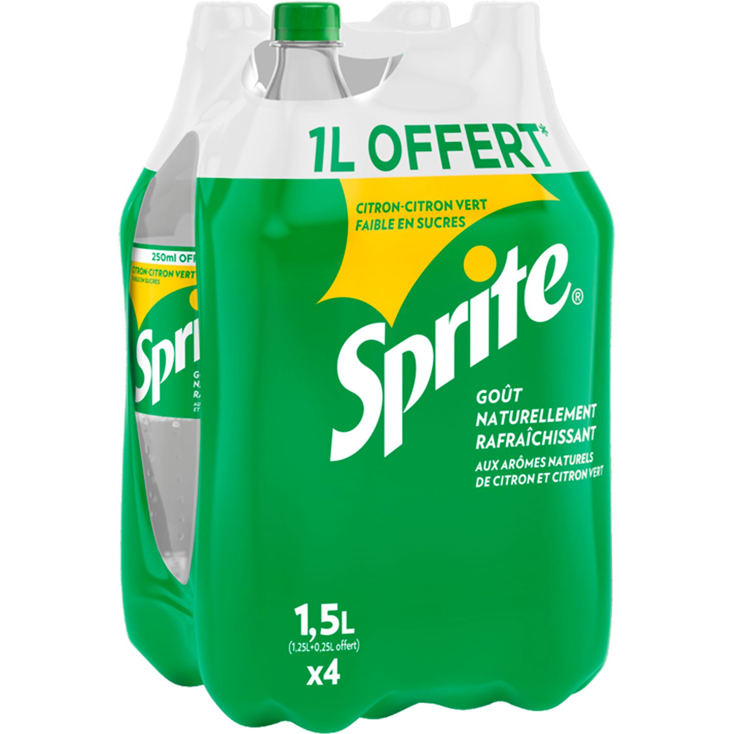 Sprite citron-citron vert 4 x 1,5 L 1 L offert Boisson rafraîchissante aux arômes naturels de citron-citron vert, avec sucre et édulcorant.