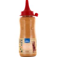 Ingrédients : Huile de colza (67,7%), sucre, concentré de tomates, eau, vinaigre, jaunes d’OEUFS salés, Whisky gélifié (Whisky (72%), sucre brûlé, arôme de Whisky, sucre), extraits naturels et aromates (poivre, CELERI, sucre brûlé, tamarin, levure, noix muscade, clou de girofle), MOUTARDE (eau, graines de MOUTARDE, vinaigre, sel, curcuma), sel, acidifiant (acide citrique), antioxydant (EDTA), épaississant (gomme xanthane), colorant (bêta-carotène).