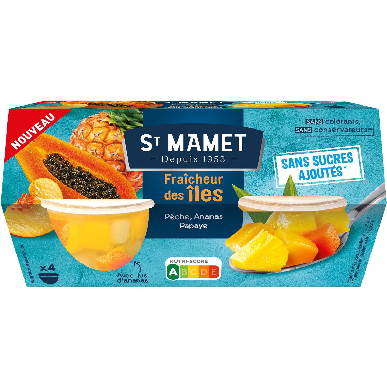 Faites le plein de fraîcheur et d'exotisme avec nos nouvelles coupelles Fraîcheur des îles Sans sucres ajoutés*. De généreux morceaux de pêches, d'ananas et de papayes. Le tout, dans une petite coupelle prête à être consommée pour un en-cas ou un dessert fruité ! *Contient des sucres naturellement présents