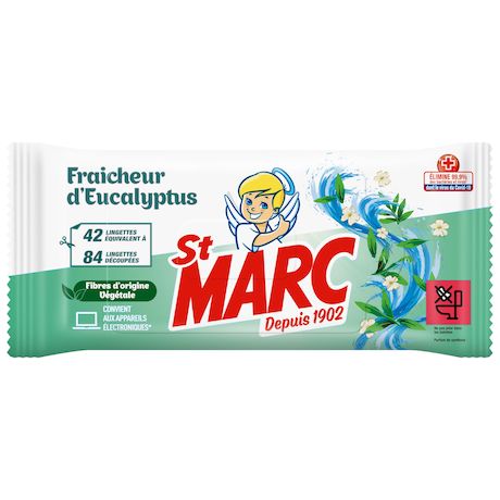 Les lingettes St Marc Eucalyptus sont pratiques, hygiéniques, résistantes et nettoient rapidement en un seul geste les surfaces lavables.