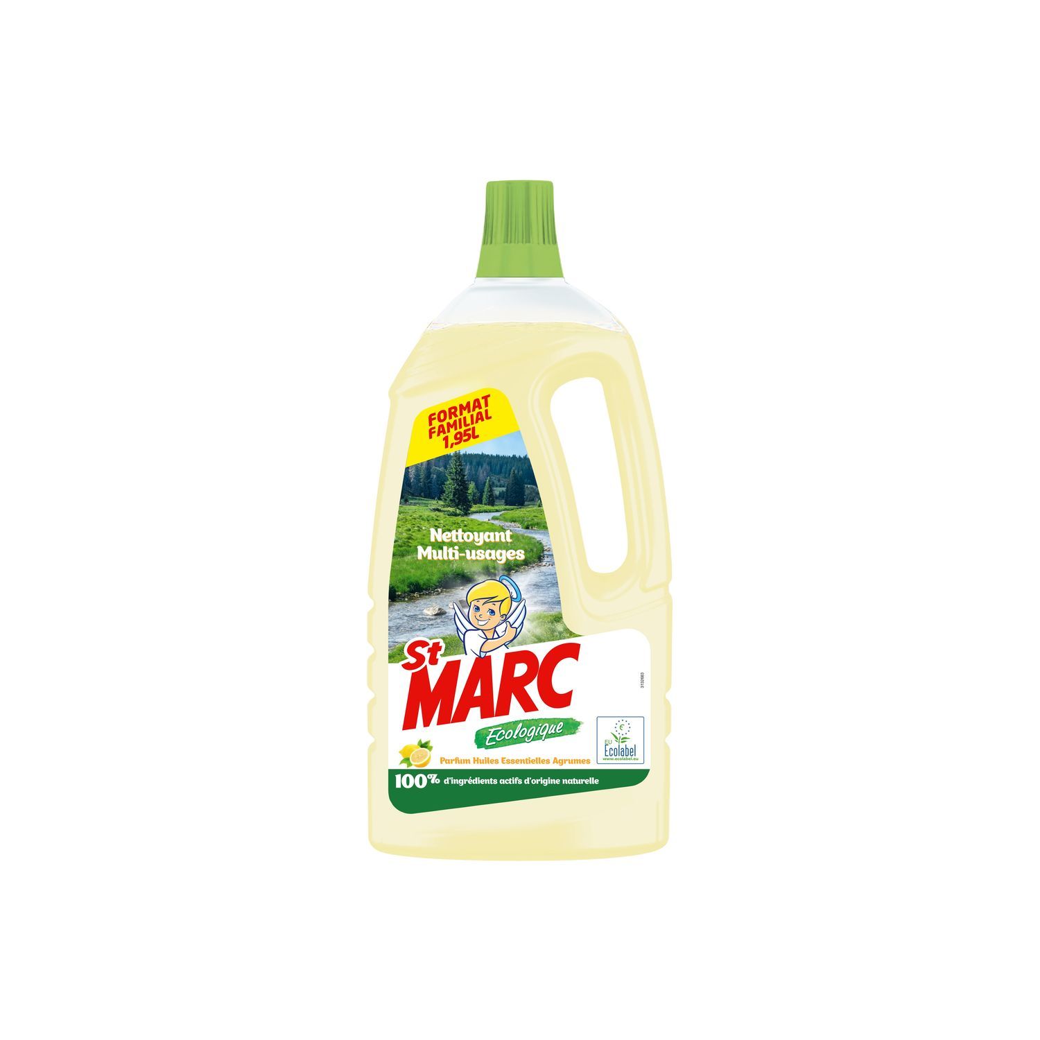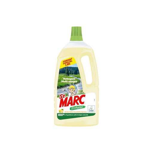 St Marc Liquide multi-usages Ecologique Agrumes 1.95L Format Familial St Marc a sélectionné pour vous des ingrédients actifs 100% d’origine naturelle pour une formule écologique & efficace : elle nettoie, décrasse et ravive l’état de vos surfaces, laissant une agréable odeur d’huiles essentielles de Mandarine & Fleurs de citronnier. La bouteille est 100% recyclable.