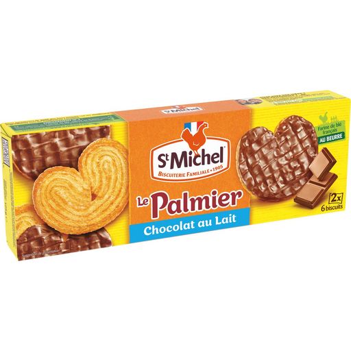Biscuit feuilleté au beurre, nappé de chocolat au lait Découvrez les palmiers nappés au chocolat au lait, l'alliance d'un chocolat au lait fondant et d'un biscuit feuilleté au beurre. Une recette simple et authentique grâce à de bons ingrédients : de la farine de blé français issu de la filière CRC®, du bon beurre, sans colorant ni conservateur et sans huile de palme. Nous les fabriquons dans notre biscuiterie familiale à Champagnac-de-Bélair, en Dordogne.