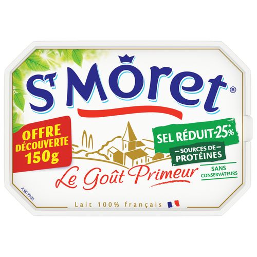Retrouvez le plaisir frais et fondant du St Môret avec 25% de sel en moins. Idéal au petit-déjeuner comme en desserts