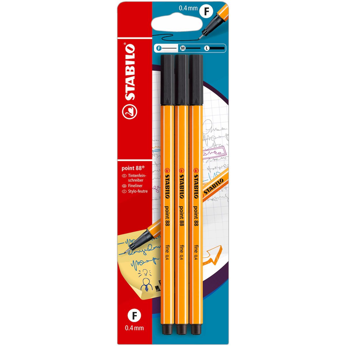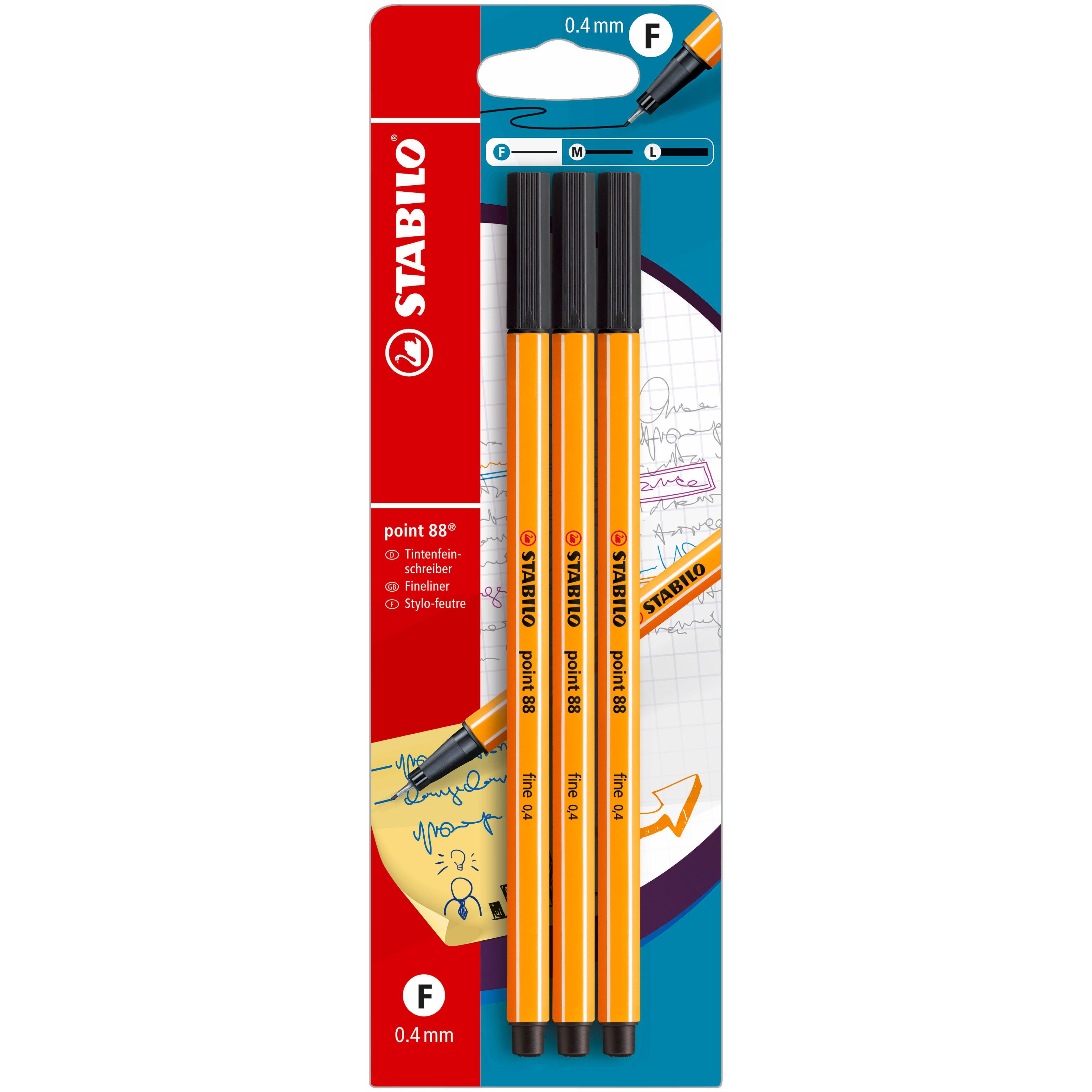 3 feutres Point 88 Pointe fine 0.4mm - Noir