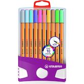 Lot de 20 stylos feutres pointe fine 0.4mm 10 éclatantes + 10 pastels Point 88