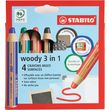Lot de 4 Woody 3 en 1 + taille-crayon + chiffonnette