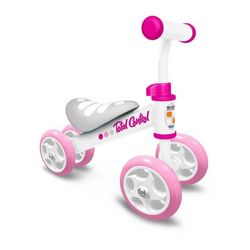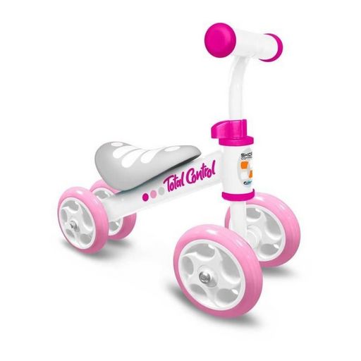 Porteur draisienne 4 roues. Cadre acier ergonomique et proche du sol. 4 grandes roues PVC. Large selle en mousse. Guidon ajustable. Poignées anti-pincement en EVA pour plus de confort. Limitation de l'angle de direction. Stimule et aide a l'apprentissage de l'équilibre (marcher et rouler). Rapide et facile a assembler.
