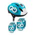 Casque et protections avec coudieres et genouilleres. Casque pour cycle, roller, trottinette, patins a roulette, skateboard. Tour de tete réglable, systeme de molette head ring pour maintien et confort. 50/56cm. Sangles jugulaires ajustables. Structure EPS. Coudieres/genouilleres avec coque blister, ajustables via velcro.