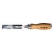 Ciseaux de sculpteur manche bois. Manche bois protégé par un vernis incolore et renforcé aux extrémités par des viroles en acier nickelé. Lame avec larges chanfreins de dégagement.