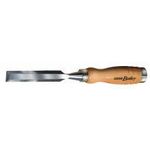 Ciseaux de sculpteur manche bois. Manche bois protégé par un vernis incolore et renforcé aux extrémités par des viroles en acier nickelé. Lame avec larges chanfreins de dégagement.