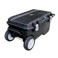 Volume 113 L. Equipé d',un plateau porte-outils, de nombreux rangements verticaux et de pattes de blocage pour outils sous le couvercle. Etanchéité parfaite norme IP53 grâce au joint périphérique. Roues grand diamètre tout terrain. Poignée latérale arrière facilitant le soulèvement. Couvercle avec rainure en V pour les coupes d',appoint. Poignée télescopique bimatière. Fermeture à larges attaches métalliques anti-corrosion. Serrure intégrée avec clés.