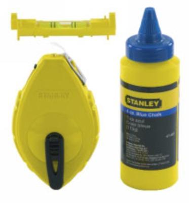 Cordeau 30 m + 113 g poudre + niveau ficelle. Boîtier ABS, trappe à glissière facilitant le remplissage, manivelle rabattable. Capacité de poudre : 30 g.