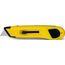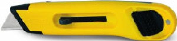 Couteau à lame rétractable 155 mm.Corps métallique.Livré avec un assortiment de 3 lames.Blocage total de la lame même pendant les coupes difficiles.Bouton poussoir arrondi.