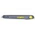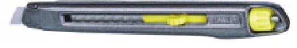 Corps métallique très résistant. Forme ergonomique anti-glisse . Bouton poussoir et blocage efficace de la lame par molette crantée.