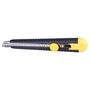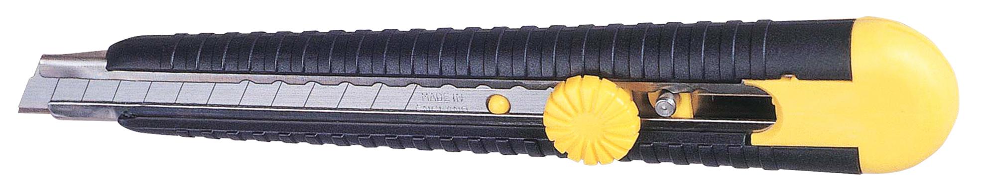 Système de blocage de la lame par molette pour une plus grande sécurité pendant la coupe. Poignée ergonomique en élastomère souple.Chariot porte-lame et guide-lame en acier inoxydable pour renforcer la longévité et la solidité du cutter.Dimensions : 135 x 9 mm