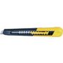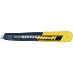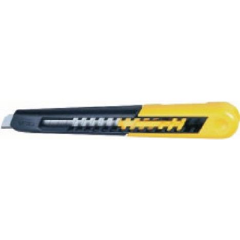 Corps en matière synthétique en 2 parties permettant le changement rapide de la lame. Bouton poussoir multipositions. Casse lame intégré.
