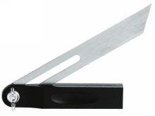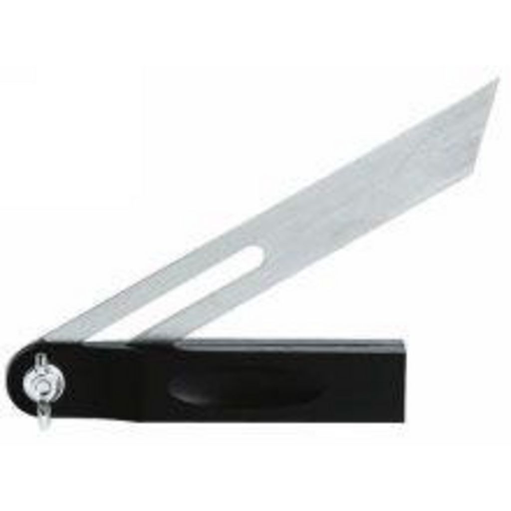 Fausse équerre de menuisier. Talon en matière synthétique avec gorges de préhension. Lame coulissante.
