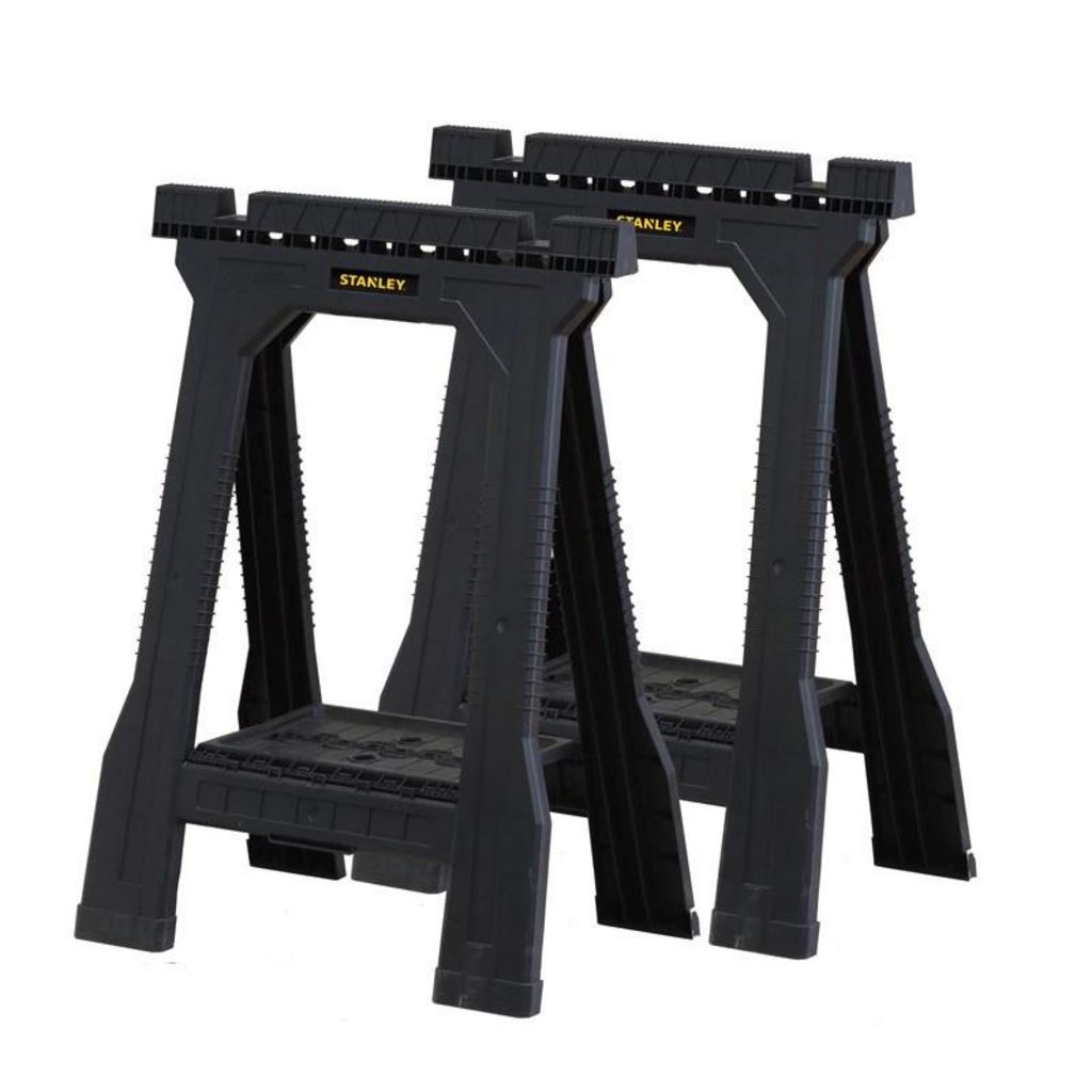 Les tréteaux pliables Stanley Junior ont une capacité de charge de 362 kg par paire. Ils disposent de rainure en V pour guider et maintenir les pièces posées sur les tréteaux. Des caoutchoucs antidérapants sont posés sur les pieds et un plateau est intégré sur chaque tréteau.