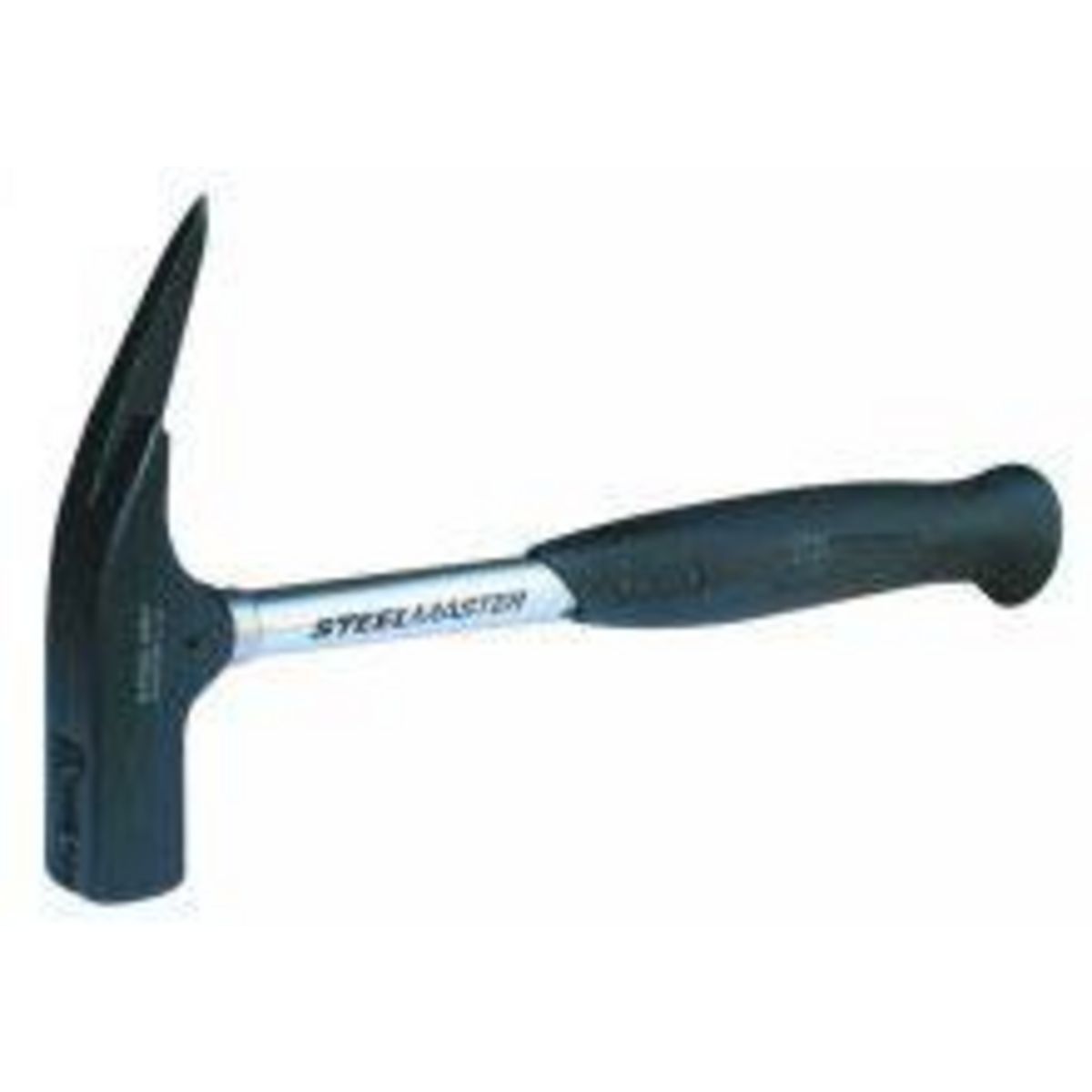 Marteau de charpentier magnétique. Forme arrache-clous et logement magnétique pour clous. Pointe unique pour fixer le marteau dans la charpente et libérer les mains. Manche tubulaire chromé et gainé.