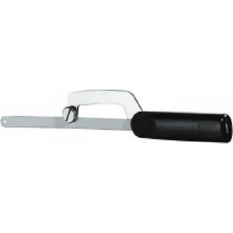 Mini-scie à armature métallique. Poignée en matière synthétique, lame ajustable sur toute la longueur. Accepte toutes les longueurs de lame, même cassées.
