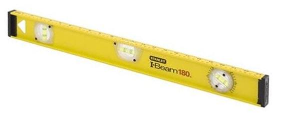 Niveau alu à déclivité I-Beam 180. Longueur : 10*00 mm.Corps alu profilé en I très résistant.3 fioles tubulaires : fiole horizontale, verticale et de déclivité avec double graduation de 0 à 90 degrés. Embouts de protection à chaque extrémité.