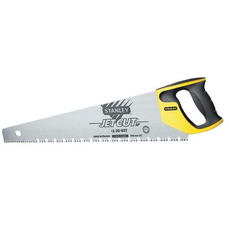 Denture encochée avec larges gorges de dégagement pour sciage de carreauxet de panneaux de plâtre.Poignée ergonomique bi-matière soudée aux ultrasons.