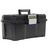 Cette boîte a outil d'une large capacite et un plateau amovible est un excellent organisateur pour vos outils. Elle est faite en plastique durable et est portable. Avec le poussoir a verrouillage, vos outils sont gardes en securite a l'interieur. La rainure en V dans le couvercle vous aidera a avoir la coupe parfaite sur les tuyaux et le bois lorsqu'il n'ya pas de banc de travail.