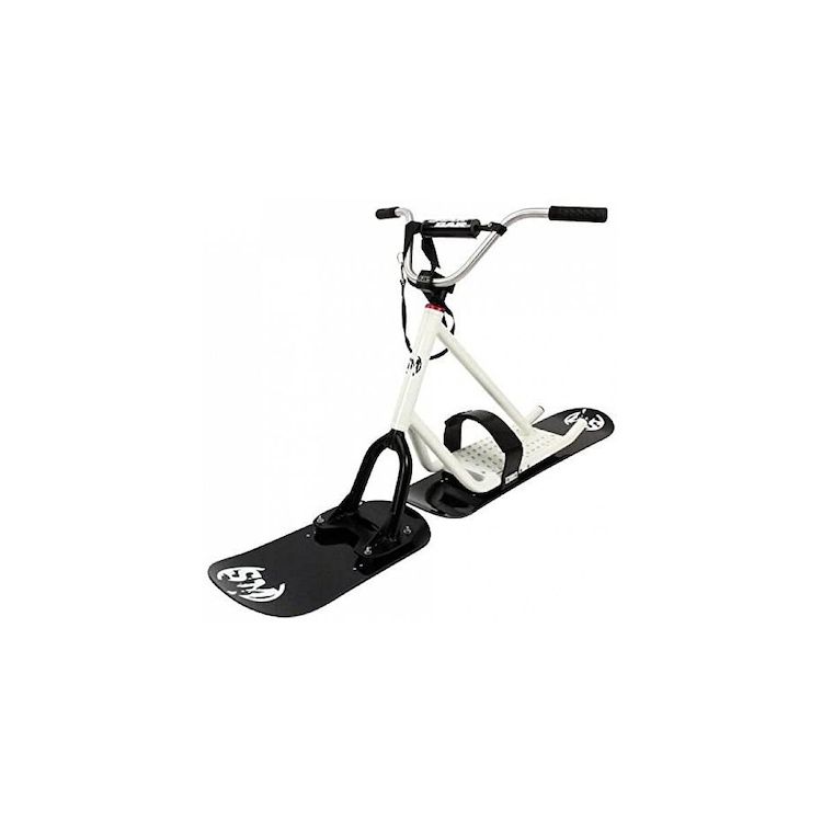 Cadre alu. Guidon BMX alu type HFFM. Spatule construction sandwich semelle noir. Poids 10.7kg. Coloris blanc. Info + Footstrap inclus avec vis inox