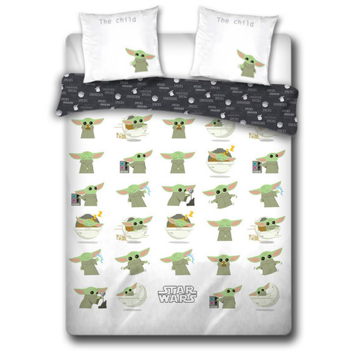 Parure housse de couette en 100% coton STAR WARS imprimé YODA pour tous les fans de la saga ! Housse de couette sans rabat.
