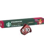 Découvrez les capsules STARBUCKS Sumatra by NESPRESSO un café 100% pur Arabica d'origine Sumatra à préparer chez vous avec votre machine NESPRESSO. Ce café propose une douce sensation en bouche, des arômes prolongés d'herbes séchées et de terre fraîche, et presque aucune acidité. Un format boîte contenant 10 capsules vous permet de préparer 10 tasses de café STARBUCKS Sumatra. Intensité 10.