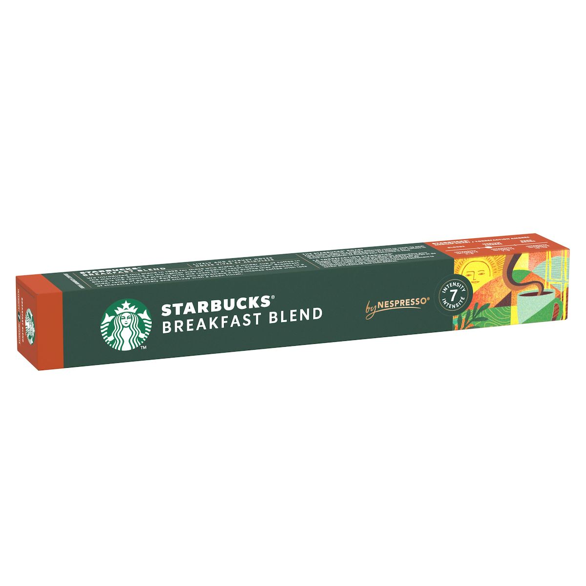 Découvrez STARBUCKS Breakfast Blend, un café 100% Arabica à préparer chez vous avec votre machine NESPRESSO. Une torréfaction ambrée qui permet un rendu en tasse doux et équilibré, aux notes vives et légèrement acidulées. Un mélange créé pour ceux qui préfèrent commencer la journée avec un café long moins intense mais plein de caractère. Un format boîte contenant 10 capsules vous permet de préparer 10 tasses de STARBUCKS Breakfast Blend. Intensité 7/12.