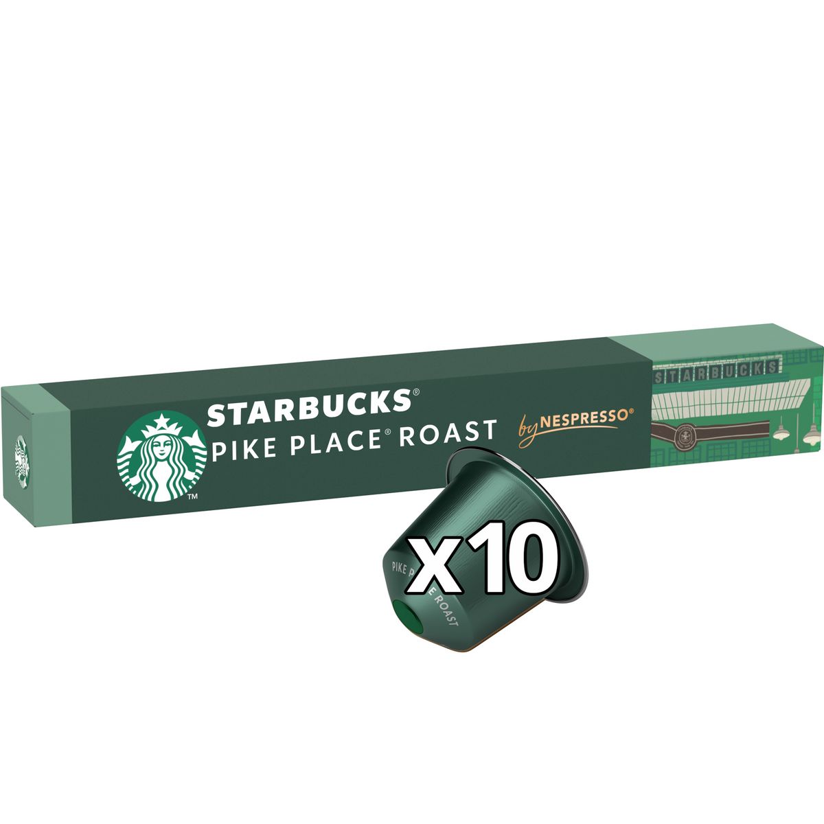 Découvrez les capsules STARBUCKS Pike Place Roast by NESPRESSO, un café 100% pur Arabica à préparer chez vous avec votre machine NESPRESSO. Savourez un mélange doux et équilibré de cafés d'Amérique latine avec des arômes riches de chocolat et de noisettes grillées. Un format boîte contenant 10 capsules vous permet de préparer 10 tasses de café STARBUCKS Pike Place Roast. Intensité 7.