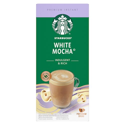 Découvrez STARBUCKS® White Mocha en format sticks : cette délicieuse boisson gourmande allie la finesse de l'Arabica, la douceur du lait, un bon goût de chocolat blanc et une mousse onctueuse et généreuse. Laissez-vous donc tenter par STARBUCKS® White Mocha et profitez de la qualité des coffee shops* STARBUCKS® à la maison !*salon de café.