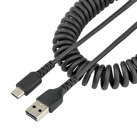 Le câble USB Startechcom R2ACC-50C-USB-CABLE est un câble de données et de recharge de 50 cm conçu pour une utilisation avec des appareils USB-C. Ce câble spiralé noir est fabriqué en TPE (Élastomère Thermoplastique) avec un revêtement en fibre d'aramide, garantissant une durabilité exceptionnelle.