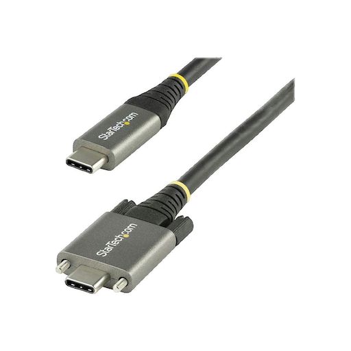 Le Câble USB-C StarTech 0065030893459 verrouillé de 1 mètre est conçu pour une synchronisation et une recharge efficaces. Il offre un transfert de données ultra-rapide jusqu'à 10 Gbps et supporte une puissance maximale de 100W (5A). Fabriqué en thermoplastique flexible (TPE), il assure durabilité et