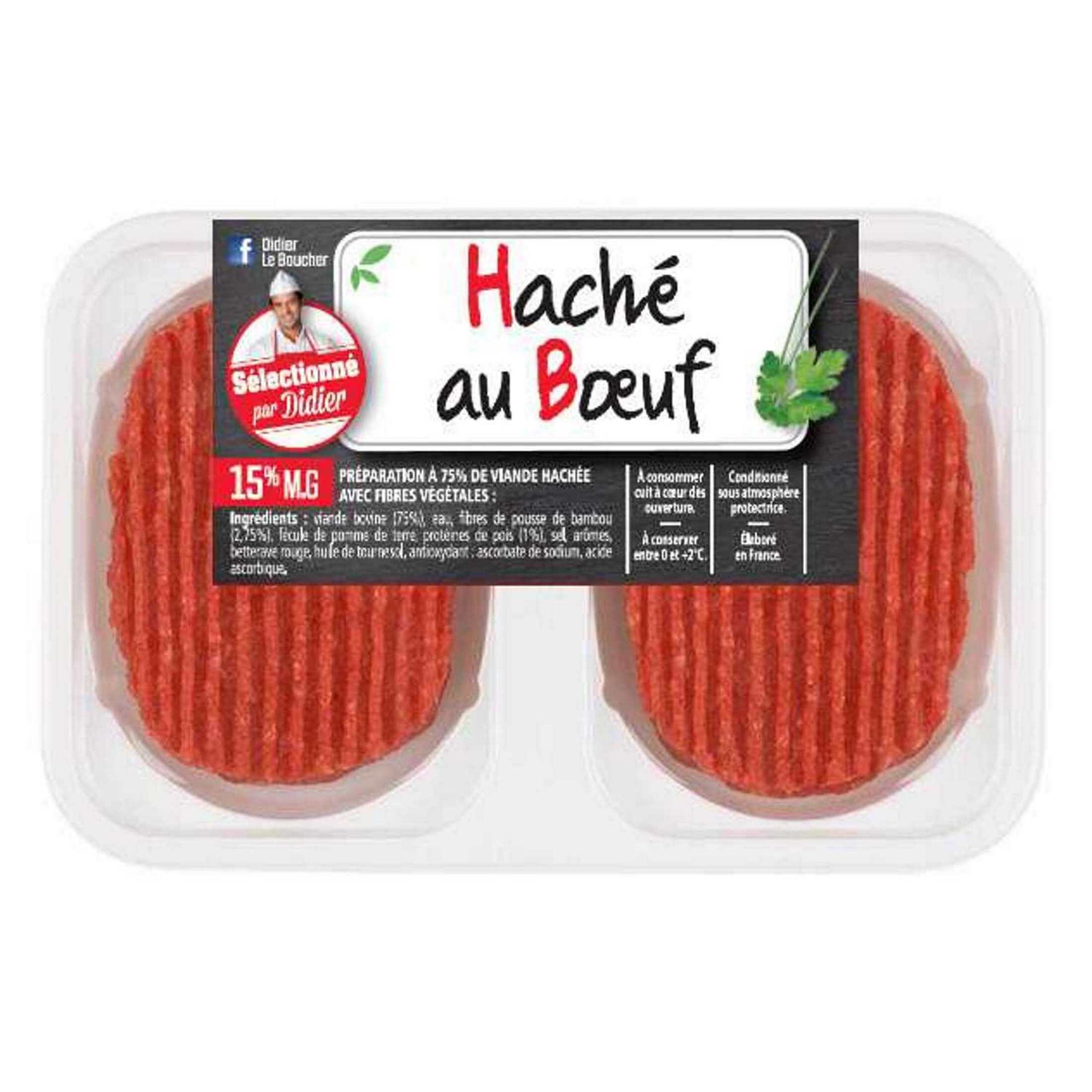 Préparation à 75%de viande bovine hachée avec fibres végétales
