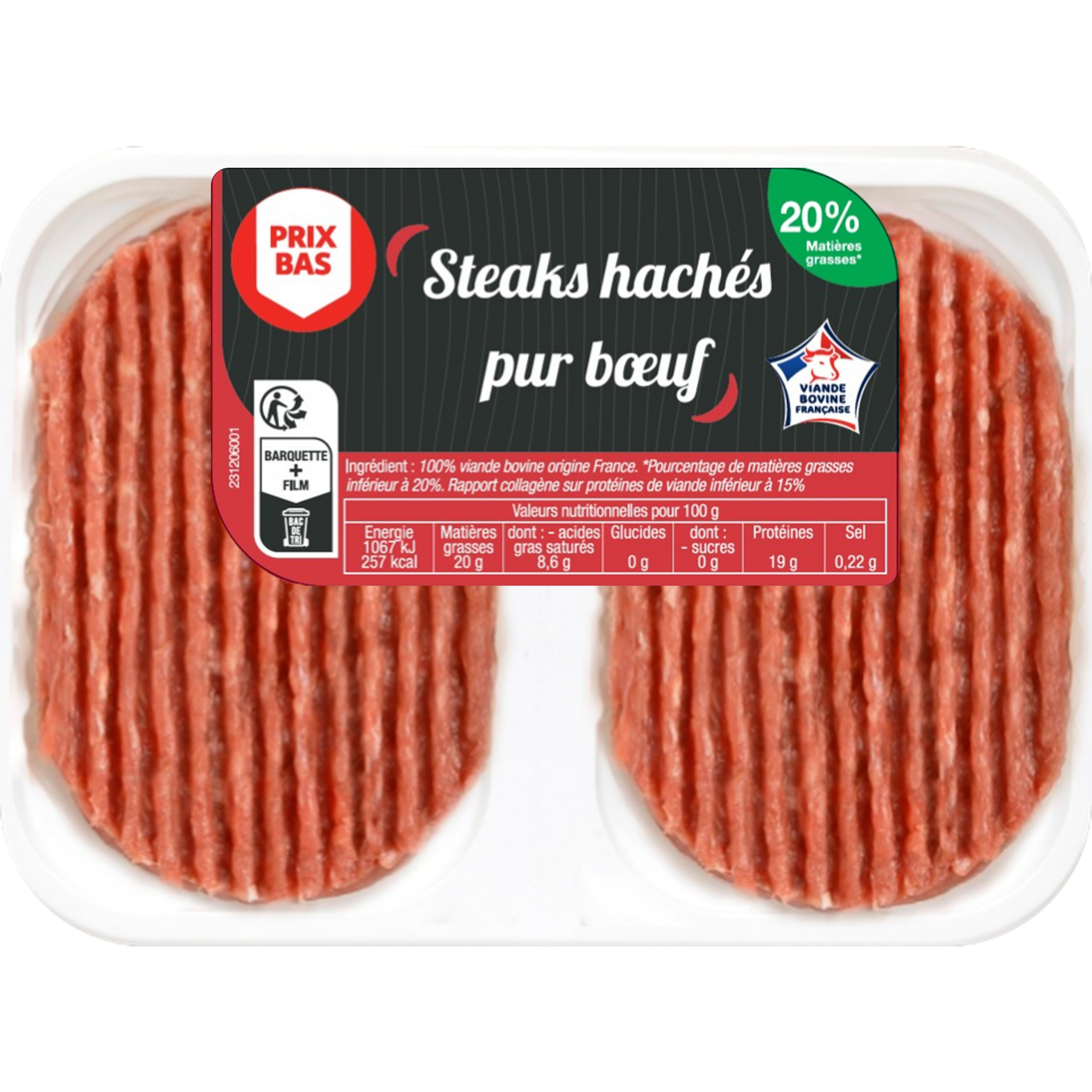 Ingrédients : Ingrédient : 100% viande bovine origine France.