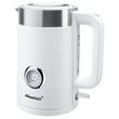 Découvrez la bouilloire électrique Steba WK 10 Bianco, idéale pour la cuisine. Cette bouilloire moderne blanche dispose d'une capacité de 1,7 litre et offre un affichage de température jusqu'à 100 °C. Sans fil, elle est équipée d'une base rotative à 360° et d'une fonction d'arrêt automatique pour garantir la sécurité. Sa coque en plastique avec double paroi en acier inoxydable assure une excellente isolation thermique. Parfaite pour préparer rapidement vos boissons chaudes en toute sécurité.