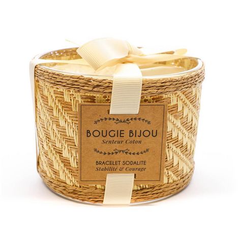 Craquez pour cette bougie Stella GreenSenteur CotonBracelet sodalitéBijou stabilité & couragePaille tressée