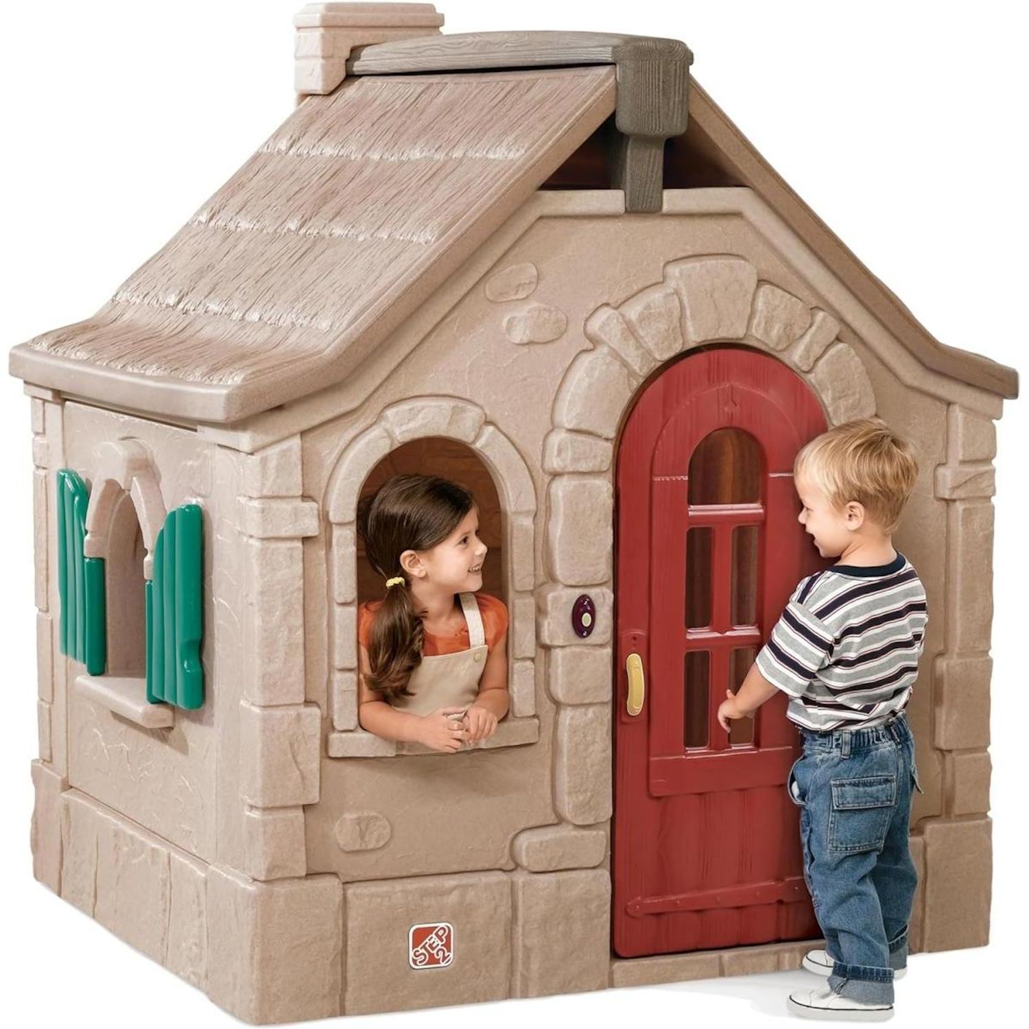 Produit d'une qualité inégalée: fabriquée aux Etats-Unis, en plastique roto-moulé extrêmement résistant, supportant des températures allant de -30C° à +60C°, avec une garantie de 3 ans. Une grande maison de charme, avec ses murs imitation pierre et son toit imitation chaume. Nombreuses activités: grande porte d'entrée équipée d'une sonnette, volets qui s'ouvrent et se ferment, petite table rabattable, une cuisine complète pour y jouer à plusieurs: évier avec robinet, plaques électriques (factices), horloge (factice) avec aiguilles ajustables . Enfin, le téléphone (factice) fonctionnant à piles ( 2 piles AAA non incluses) rendra cette petite maisonnette encore plus réaliste. Assemblage par un adulte requis. Aux normes Européennes EN71. A partir de 3 ans. Dimensions: 128x138x h. 163cm.Assemblage par un adulte requis. Aux normes Européennes EN71. Le produit est livré directement par le fabricant en France Métropolitaine uniquement Hors Corse. Le délai de livraison en fonction des stocks disponibles est d'environ 15 jours.