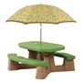 Découvrez la table de pic-nique conçue spécialement pour les enfants et équipée d'un large parasol pour les protéger du soleil ! Avec cette table de pic-nique les enfants vont pouvoir prendre leur goûter ou jouer à des activités d'intérieur (dessin jeu de société ou autres) dehors sans craindre les coups de soleil ! En retirant le plateau la table devient comme par magie une table avec jeux de sable et eau ! Conçue avec des matériaux de qualité, cette table de pic-nique peut résister à des températures extrêmes (de -30 à 60 degrés) sans s'altérer, vous pouvez donc la laisser toute l'année dans la jardin !