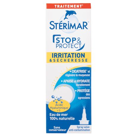 Le spray STERIMAR Nez très sec à irrité est une solution avec une double action qui d'une part, régénère et apaise la muqueuse nasale et d'autre part la protège durablement contre les agressions extérieures. Dispositif médical recommandé chez l'enfant à partir de 3 ans et l'adulte. Convient aux femmes enceintes et allaitantes. Efficacité scientifiquement prouvée. Sans conservateur.