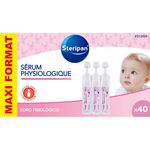 Le sérum physiologique STERIPAN est une solution de chlorure de sodium stérile. Présenté en unidose, il est hygiénique et vous apporte facilité et sécurité d'emploi. Il est conseillé chez les nourrissons, les enfants et les adultes pour le lavage nasal et oculaire, le rinçage auriculaire et le lavage des plaies.