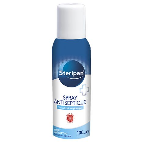 Le Spray Antiseptique STERIPAN assure une parfaite hygiène cutanée de la peau saine. Sans alcool, il ne pique pas et permet un nettoyage en douceur. Sa formule contient du Digluconate de Chlorhexidine (0,10% m/m - CAS N°18472-51-0) reconnu pour ses propriétés antibactériennes.