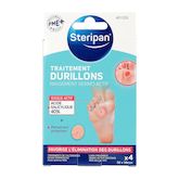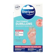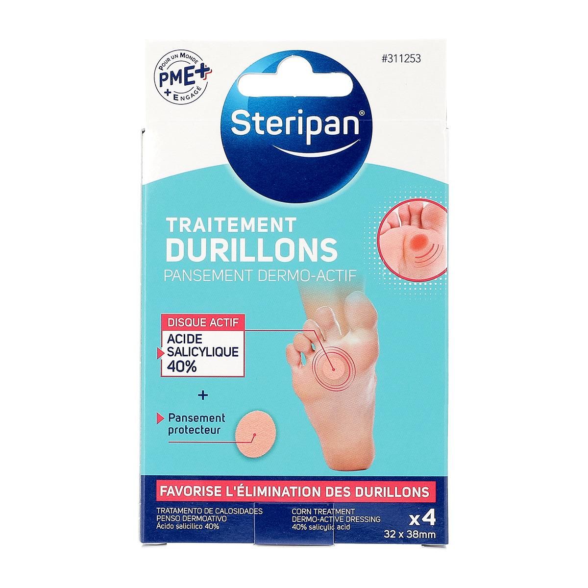 Ne pas utiliser pour de longs traitements . Un long traitement pourrait provoquer un phénomène de sensibilisation; dans ce cas arrêter immédiatement le traitement. Ne pas utiliser sur une peau enflammée, lésée ou abîmée, ou sur une peau sans durillons. Tenir hors de portée des enfants. Pour usage externe uniquement. Ne pas réutiliser. Contient du latex de caoutchouc naturel peut provoquer des réactions allergiques.