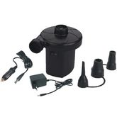 Stermay HT-202 Un gonfleur, dégonfleur compacte et très pratique qui vous suivra partout grâce à son double voltage 220/12V - Pession : 0.02 BarFlux d'air : 200 L/heureNormes CE - ROHS.Transformateur pour branchement 220 VoltsBranchement 12 Volts pour allume-cigare voiture3 Embouts de gonflage de di