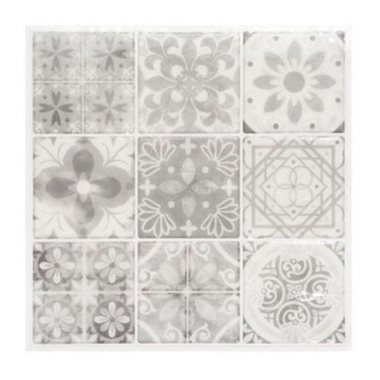 Informations Techniques : Dimensions : L. 25 x l. 25 x H. 25,2 cm Matière : PVC Spécificités : Design & tendance Lot de 2 stickers Forme carrée Contient 9 carreaux Motif fantaisie Poids : 0,07 kg Couleur : Gris