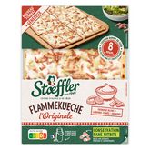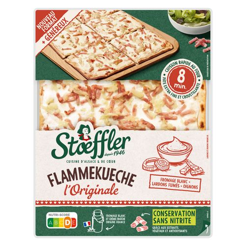 La recette d’origine des tartes flambées (fromage blanc, crème fraîche, oignons et fin lardons fumés) dans le format traditionnel des winstubs alsaciennes.